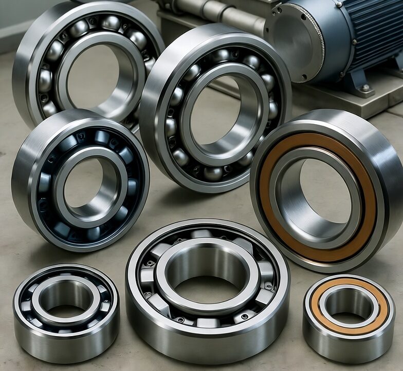 Industrial bearings minimize friction and support loads in machinery to boost efficiency and durability. Main types include ball bearings for low-friction moderate loads, roller bearings (cylindrical, spherical, tapered) for heavy-duty use, and plain/sleeve bearings for simple sliding applications. Specialized options like thrust and needle bearings address axial forces or space constraints, tailored to specific operational needs.